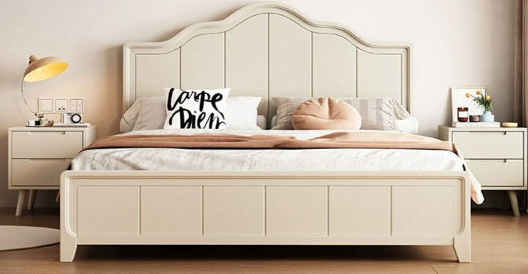 CLAUDE HILTON American Solid Wood White Bed Frame. This white solid wood bed frame delivers timeless elegance with its crisp, clean contemporary design, all without compromising on comfort or value. Has a large headboard for an elegant look in your bedroom. Available in king and queen sizes as well as 3 different frame styles to suit your preferences. Matching-style bedside table available to complement your bed. Mattress to be purchased separately. Assembly included.